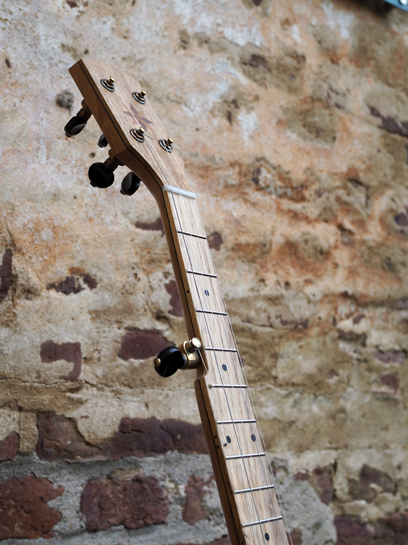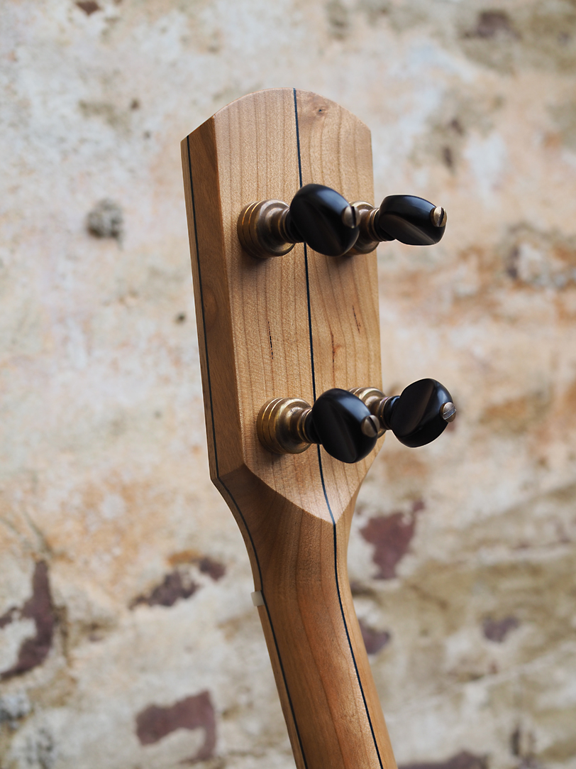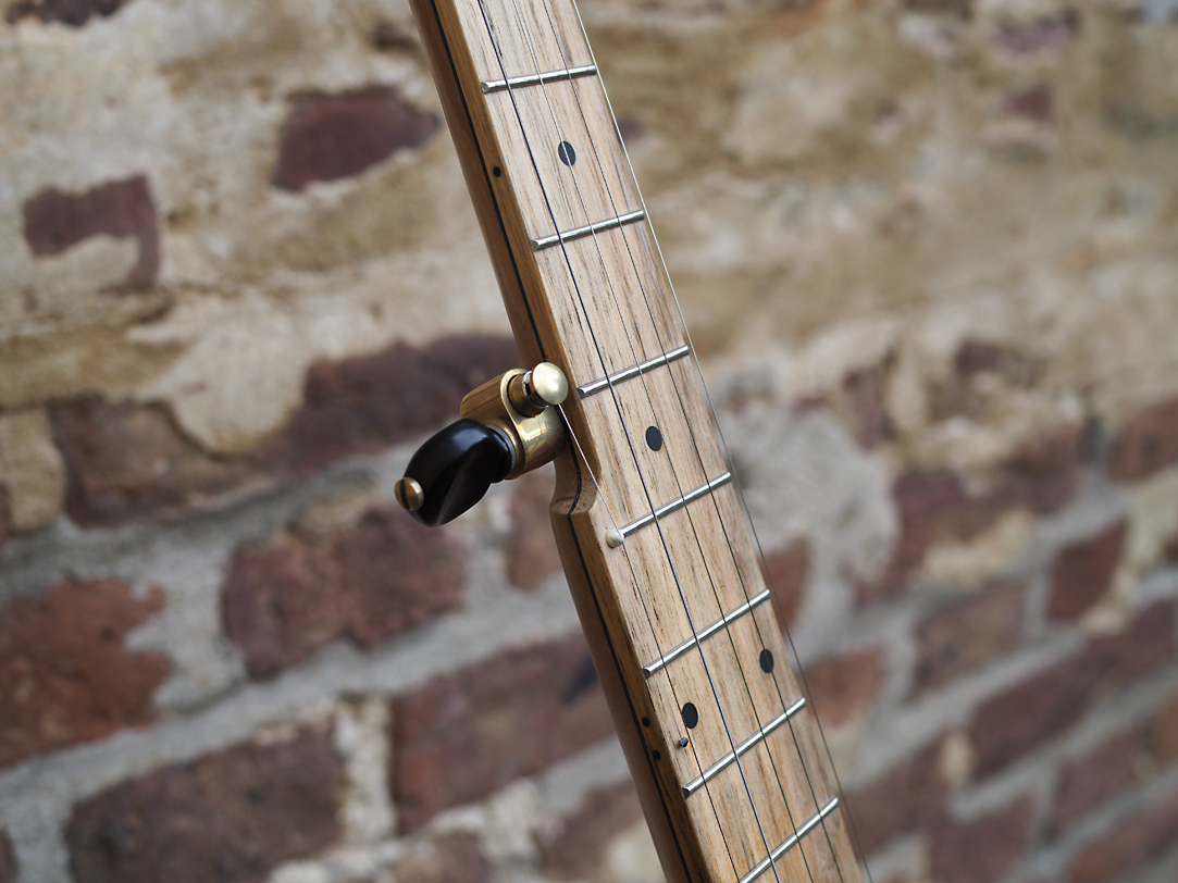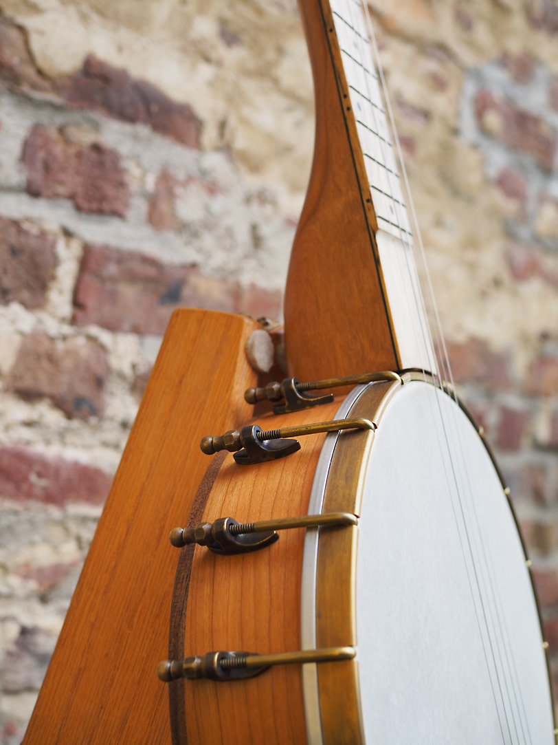 “Classic” Old-Time sound with good sustain and volume, not too bright and not overpowering. Can be muted for a more plunky tone.