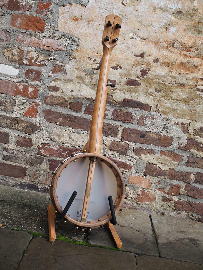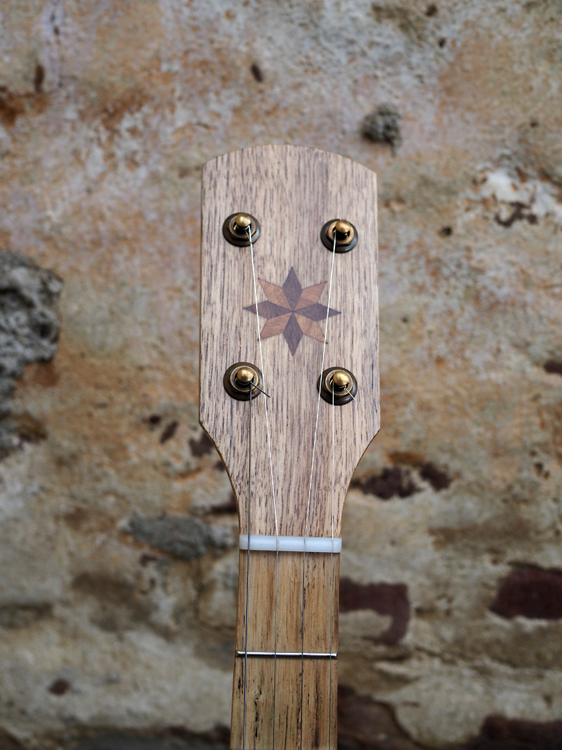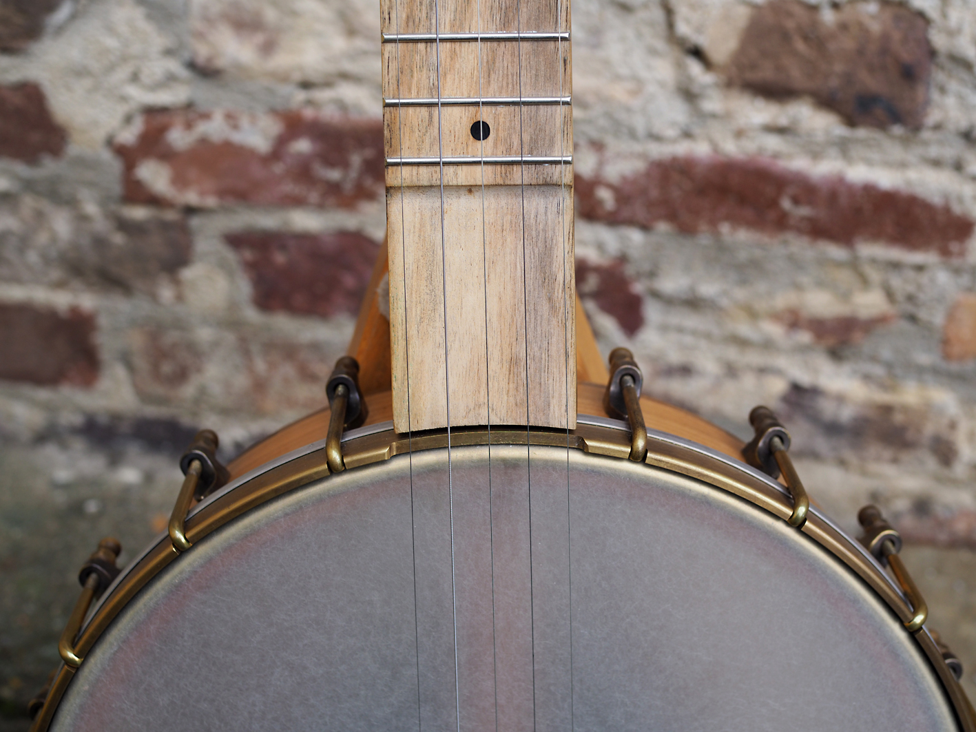 “Classic” Old-Time sound with good sustain and volume, not too bright and not overpowering. Can be muted for a more plunky tone.