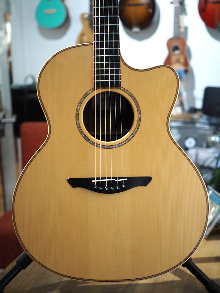 The combination of Indian Rosewood and Spruce soundboard deliver a strong rich deep tone with punchy trebles.